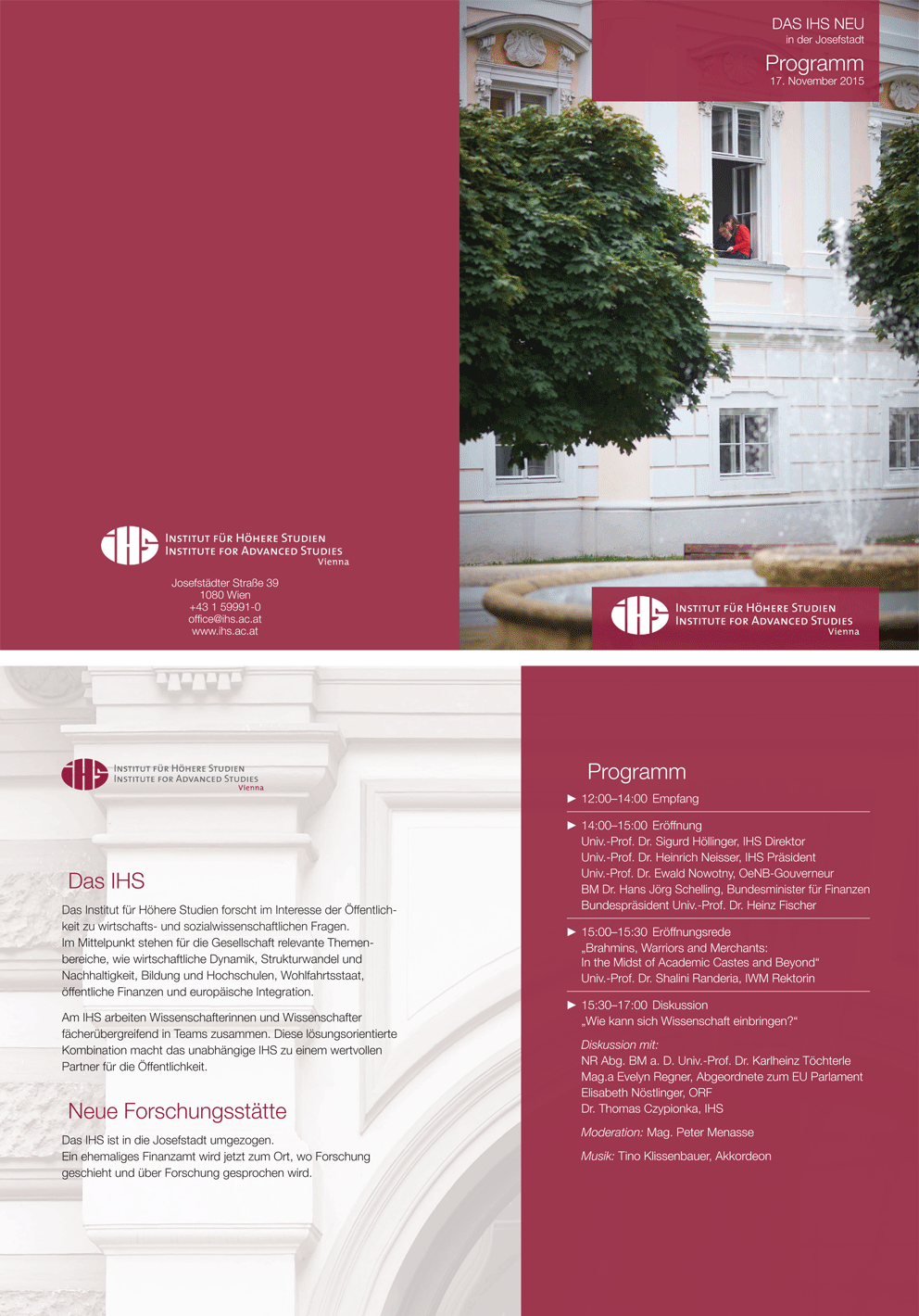 Numerous guests joined the IHS for the inauguration ceremony of the new IHS building in Josefstadt, the 8th district of Vienna, as well as for the presentation of the new IHS research strategy.